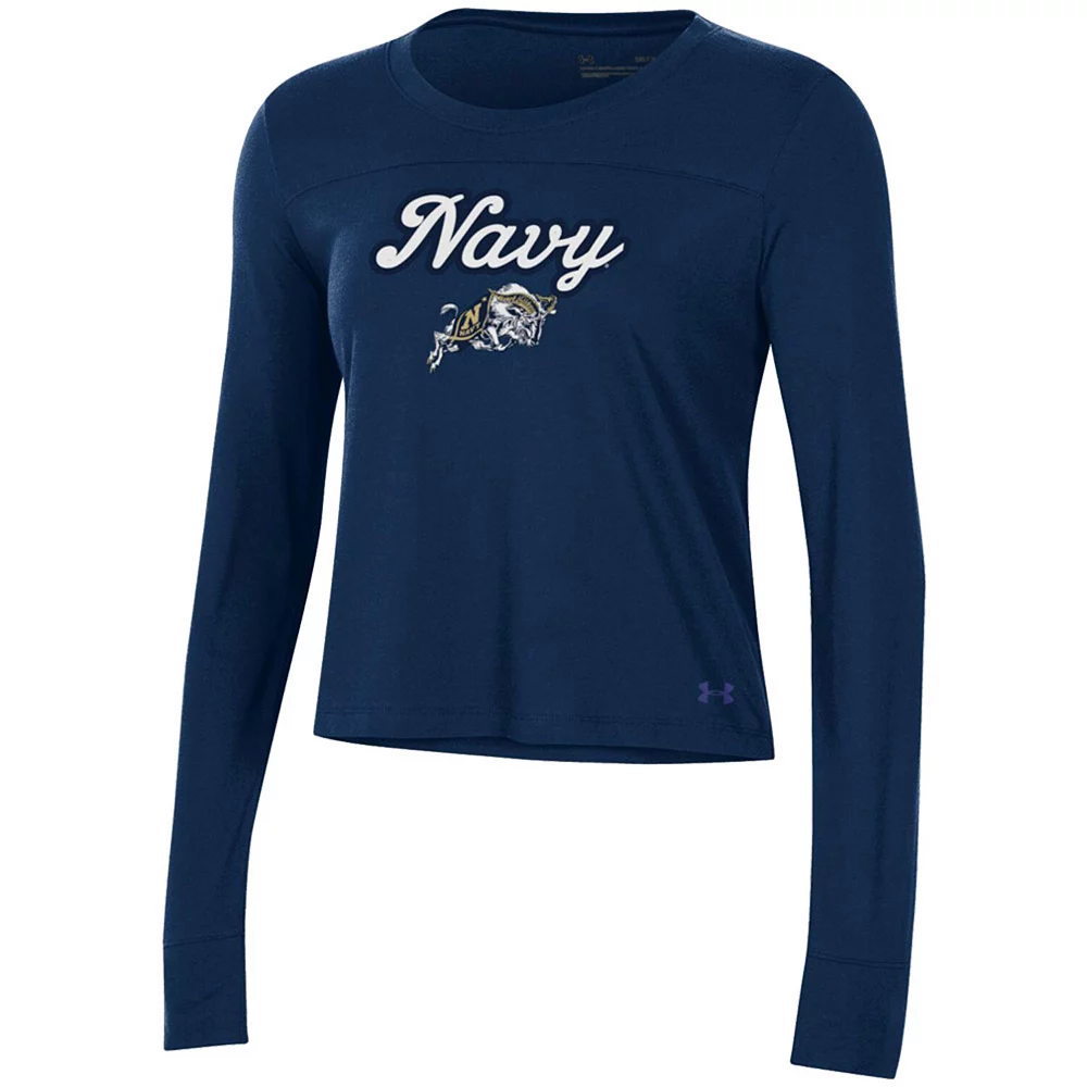 Beat the heat with a trendy look and show your Navy Midshipmen spirit in this Vault Cropped T-shirt. Under Armour gives you bold graphics and a fashion-forward look for a chic display of team pride. Keep this Navy Midshipmen top in your rotation for those warmer game days.